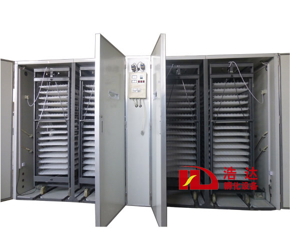 ●浩達高擋系列數碼顯示,自動控溫、報警、翻蛋、均溫、供濕、供水、煤電兩用。智能(néng)電腦全自動控制,箱式蛋架車結構,采用加固改進工藝,能(néng)同時孵化、出雛,可以分多批上蛋入孵